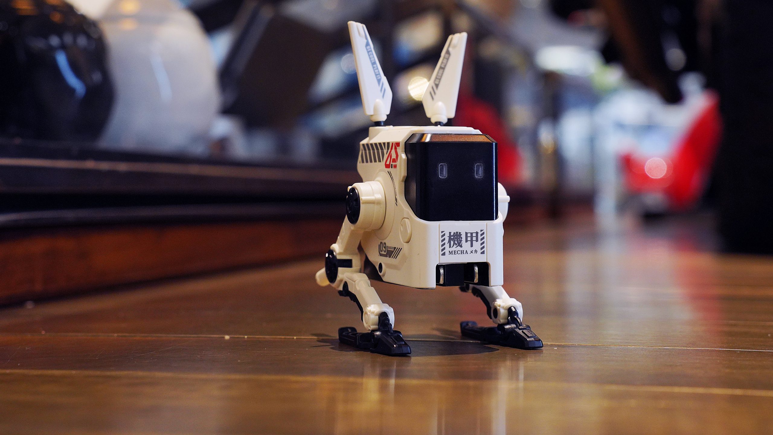 The charger is about the size of a standard GaN 65W charger, but it has a power plug on the bottom, two movable, collapsible legs, and removable antennae. There are two eyes that light up when it’s plugged in, and the prongs fold down so when it’s not in use for charging purposes, it looks like a desktop decoration. When plugged in, the eyes are red, so they have a double purpose as a charging indicator.
